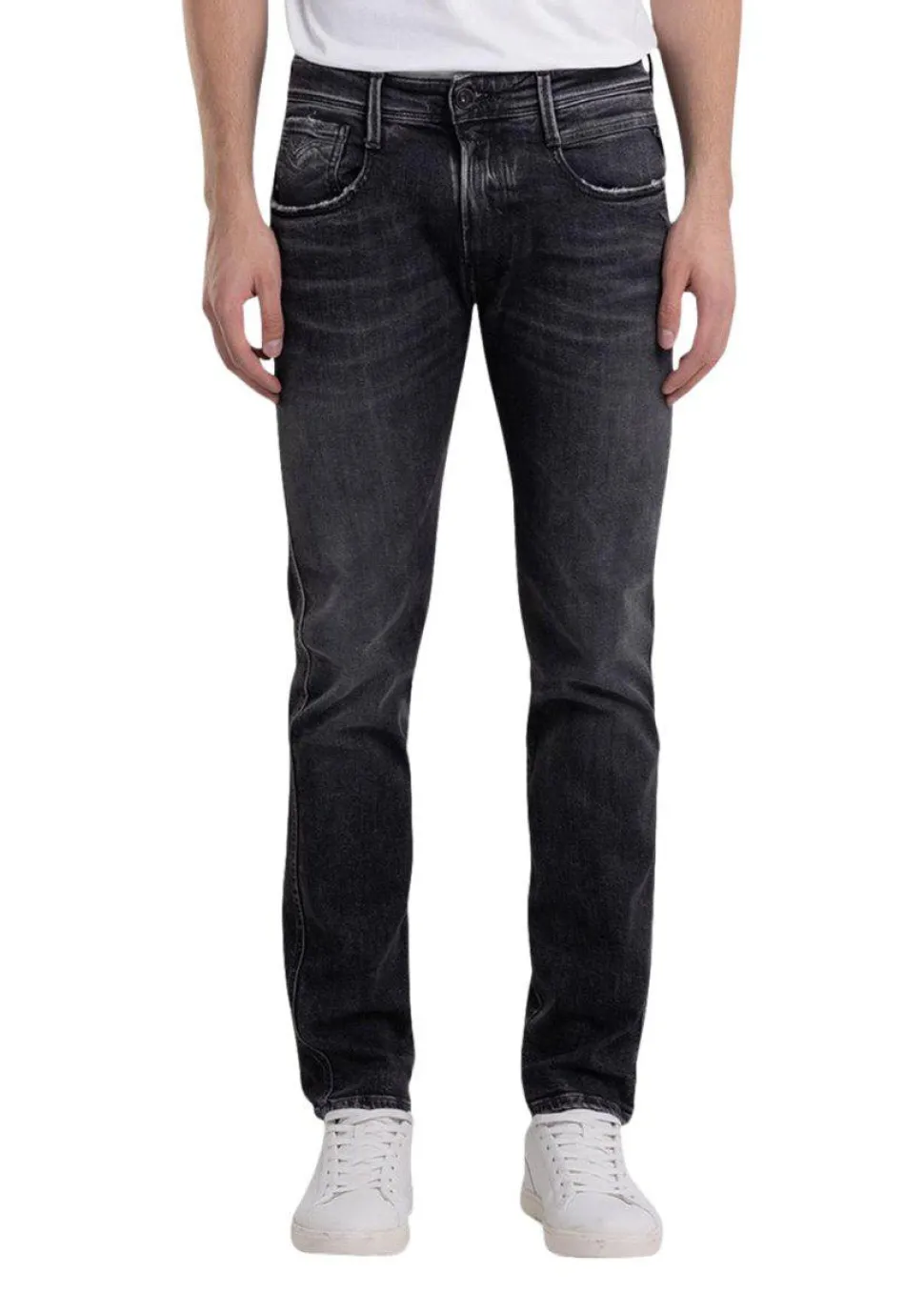 Jeans findes i alverdens modeller og farver. De kan skabe forskellige outfits afhængig af, hvad du tager på dertil. Det rette par jeans kan redde enhver tøjkrise og kan bruges til alt fra en t-shirt og sweatshirts til blazer og skjorter. Med Anbass Jeans – Grey fra Replay er din garderobe sikret et uundværligt item som du kan bruge igen og igen.