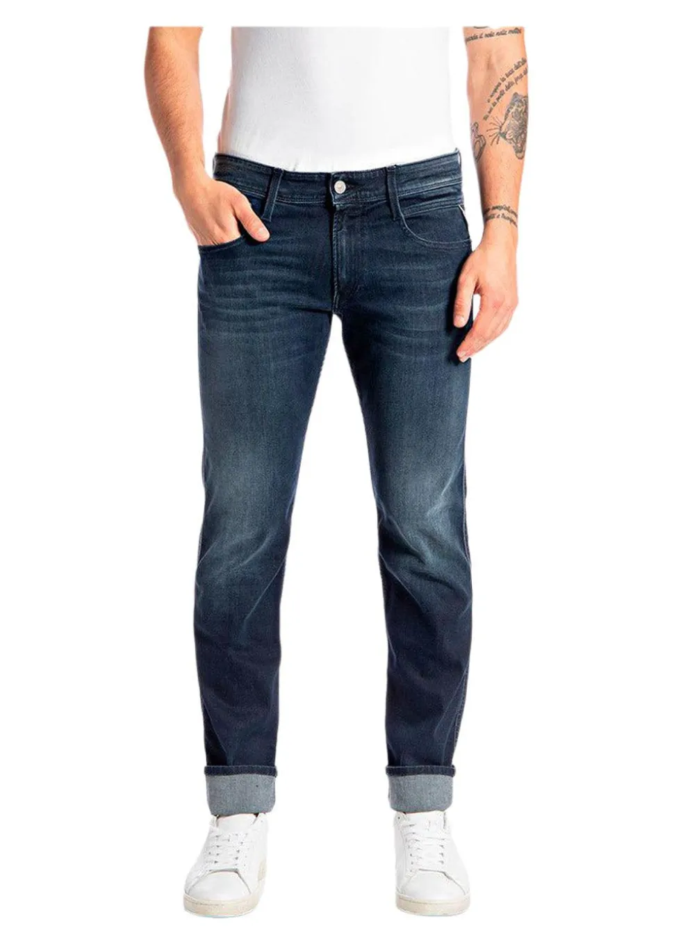 Jeans findes i alverdens modeller og farver. De kan skabe forskellige outfits afhængig af, hvad du tager på dertil. Det rette par jeans kan redde enhver tøjkrise og kan bruges til alt fra en t-shirt og sweatshirts til blazer og skjorter. Med Anbass – Dark Blue fra Replay er din garderobe sikret et uundværligt item som du kan bruge igen og igen.