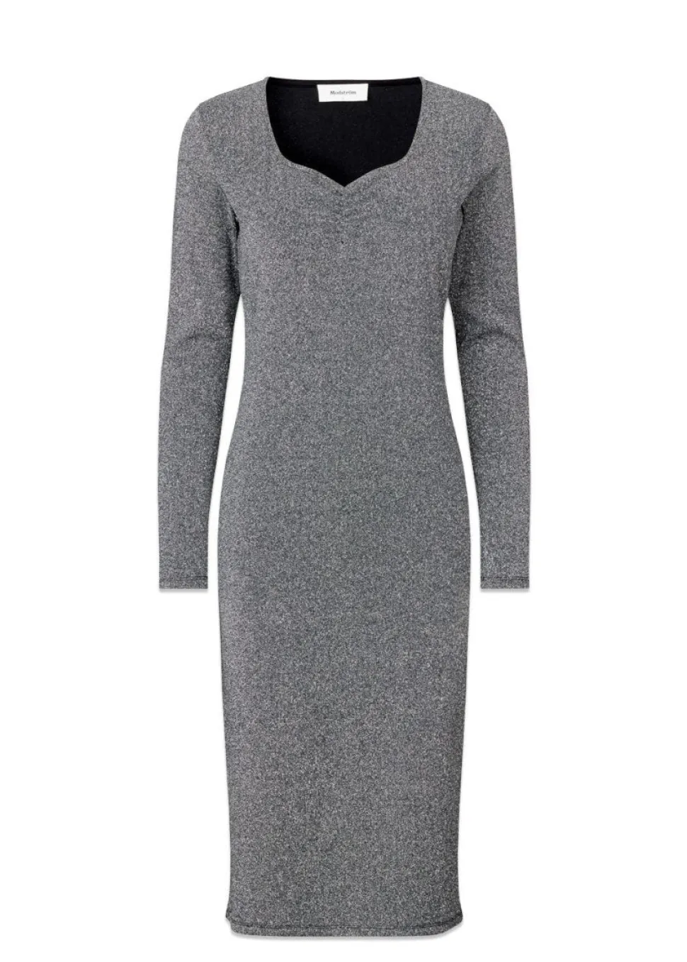 BirkeMD dress i silver er en smuk sølv kjole i en metallisk kvalitet. Kjolen er tætsiddende og har en hjerteformet udskæring med rynkedetaljer og lange ærmer. Super smuk til årets fester.