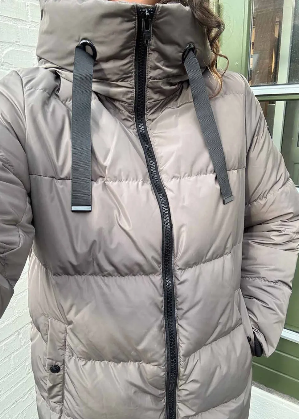 - Lækker, lang dunjakke med høj krave