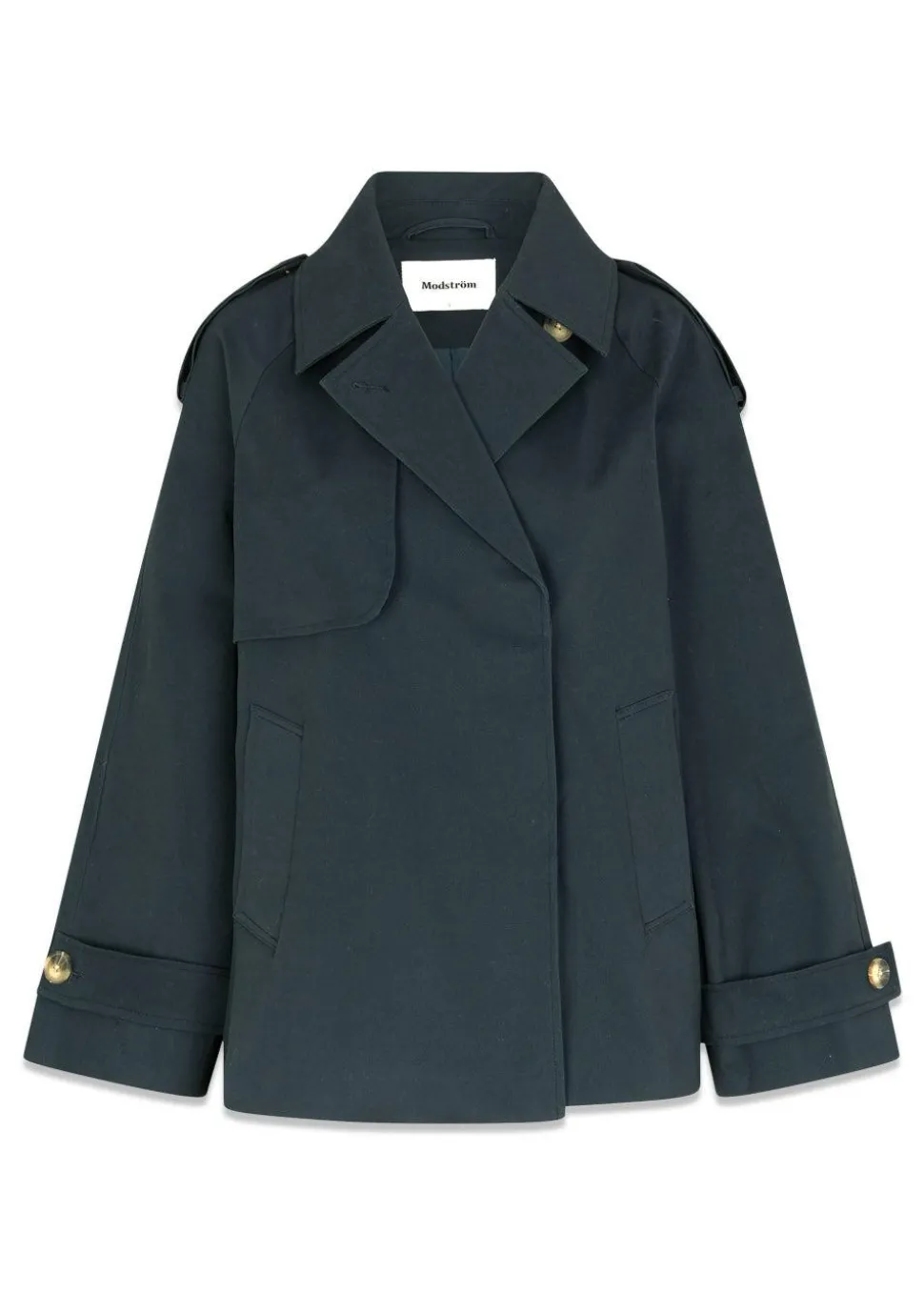 Clara jacket er en kort model af den klassiske trenchcoat. Den flotte jakke er super fin til efterår og forår og er perfekt som overgangsjakke. Clara jacket har skjult knaplukning og er let oversize, hvilket giver et cool fit.