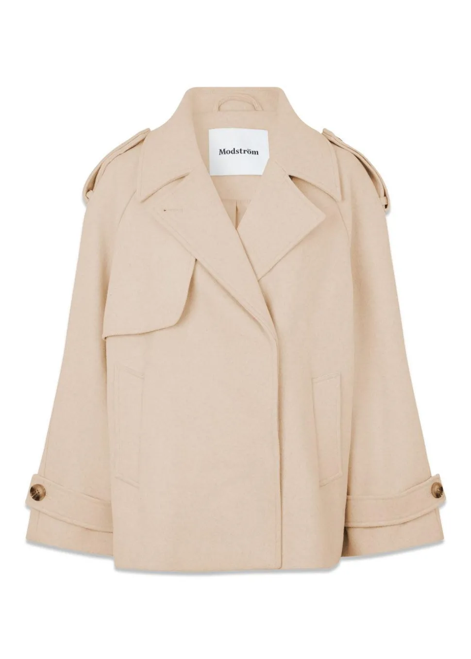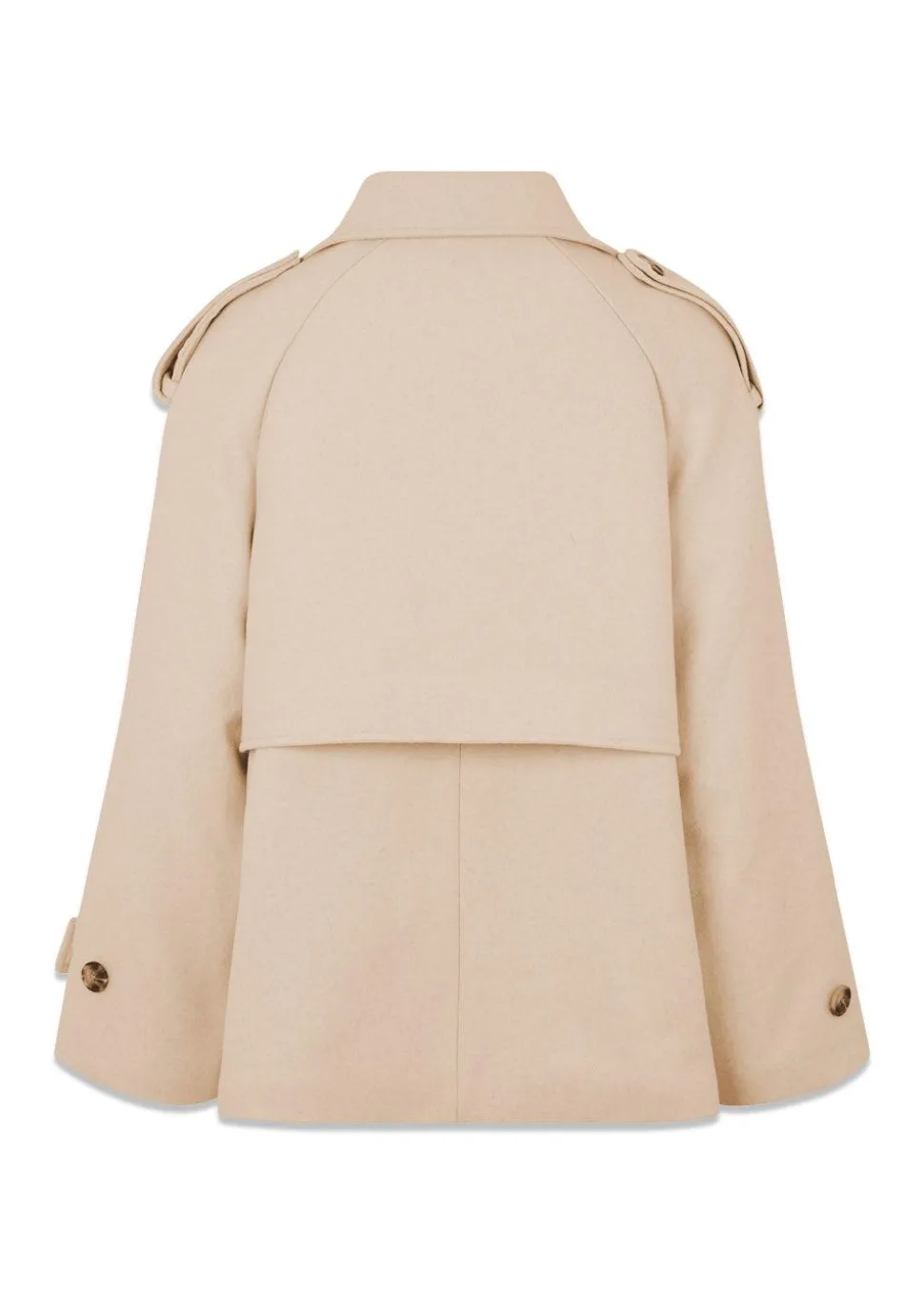 - Dobbeltradet uldfrakke med højt bærestykke bagpå