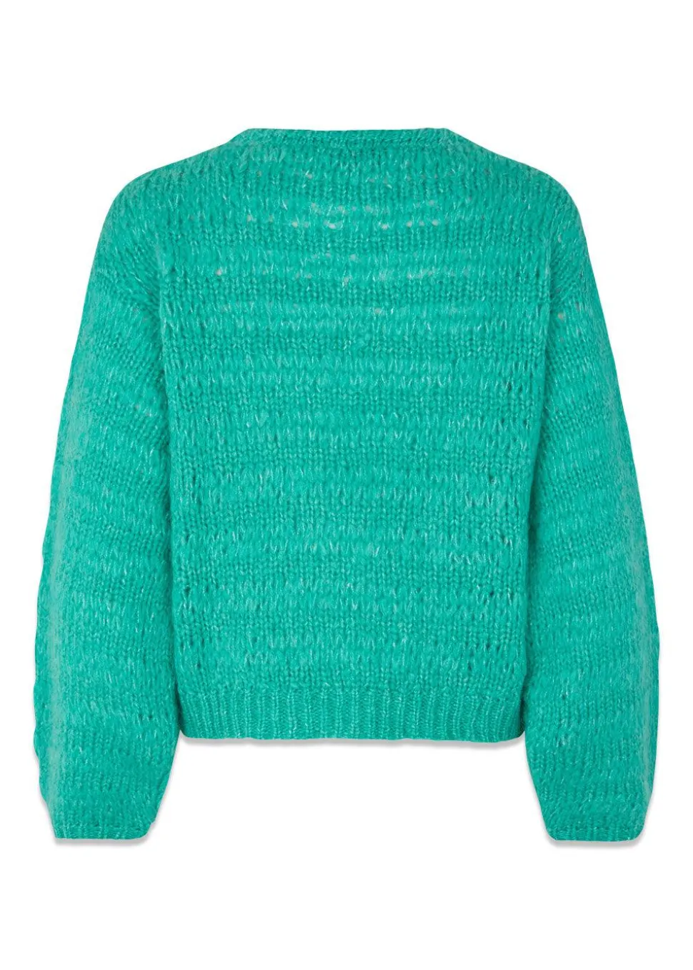 Grovermd er en uldjumper med rund hals og lange ærmer med volumen. Strikken har et afslappet fit og har ribdetaljer ved alle kanter.