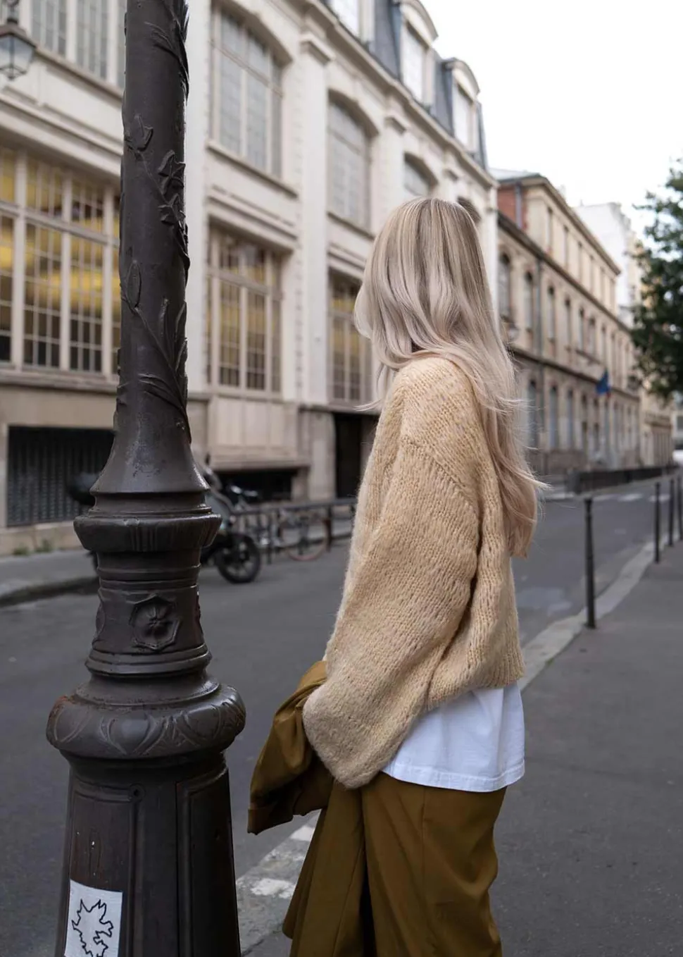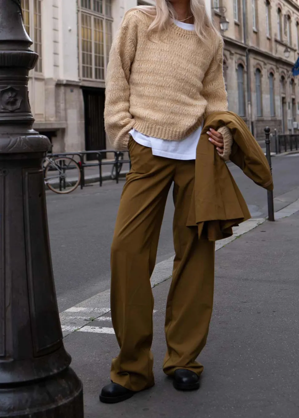 Grovermd er en uldjumper med rund hals og lange ærmer med volumen. Strikken har et afslappet fit og har ribdetaljer ved alle kanter.