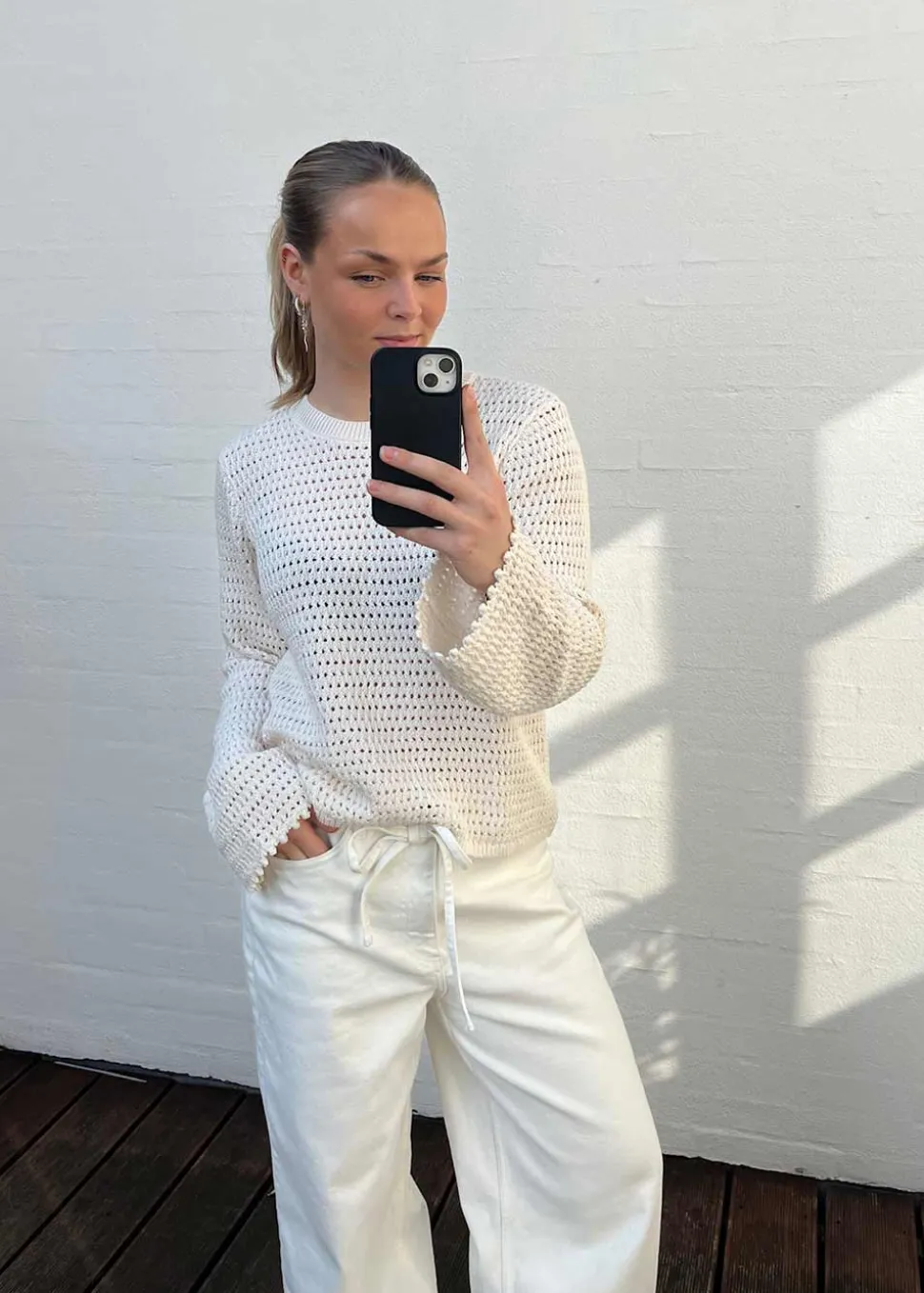 - Hæklet trøje med lange ærmer