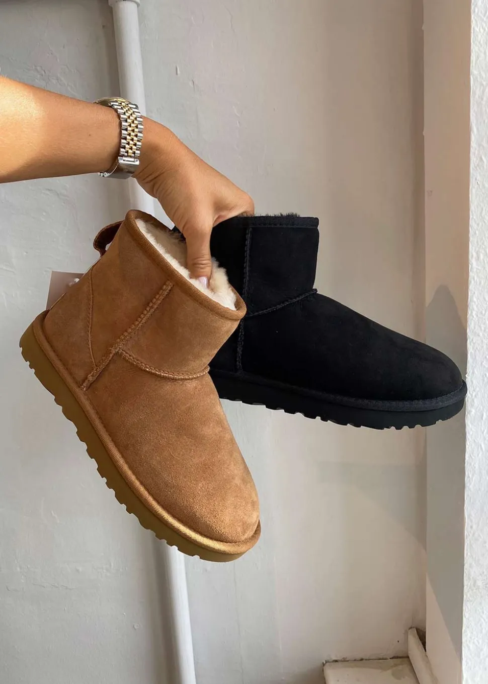 W Classic Mini II fra UGG er en blød og varm støvle i ruskind med uldfoer. Støvlen har logo i toppen ved lynlåslukningen samt på hælen.
