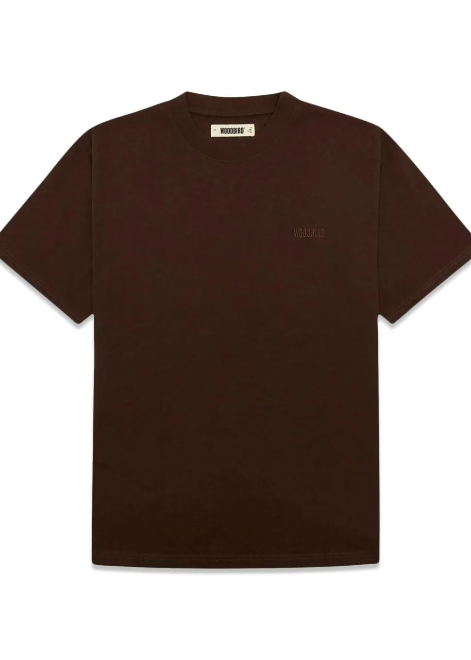 WBBaine Base Tee i brun har rund hals, et tone i tone broderet logo foran og kommer i et boxy fit.
