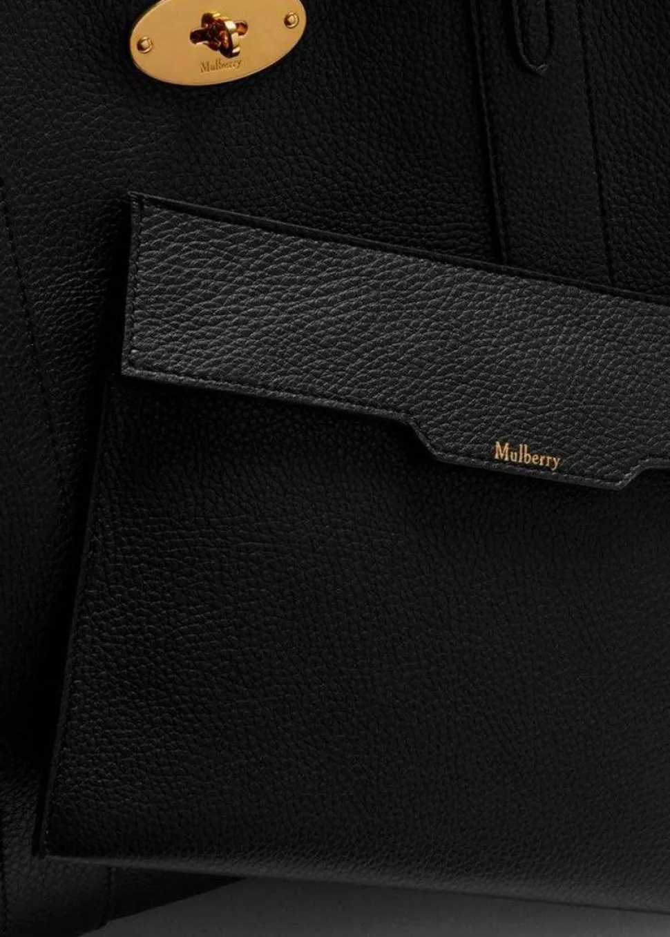 Bayswater Tote Small er en taske i farven black-oak fra Mulberry. Den har den ikoniske Postman’s Lock, to læderhåndtag, et stort rum og en aftagelig pung indeni.