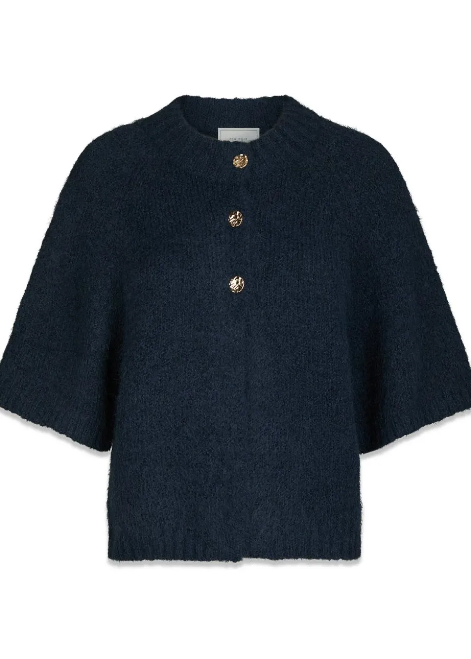 Boxy strik cardigan med vidde på ærmerne og smukke knapper foran. Kvaliteten er lækker blød og har et fluffy udtryk. Modellen er 176 cm og er iført størrelse 36.