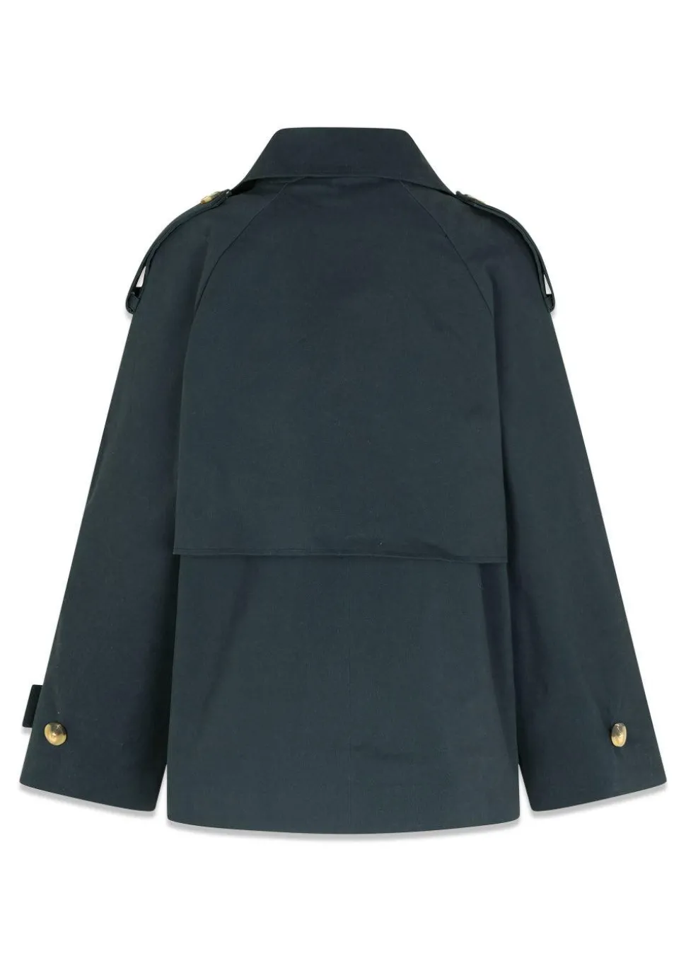 Clara jacket er en kort model af den klassiske trenchcoat. Den flotte jakke er super fin til efterår og forår og er perfekt som overgangsjakke. Clara jacket har skjult knaplukning og er let oversize, hvilket giver et cool fit.