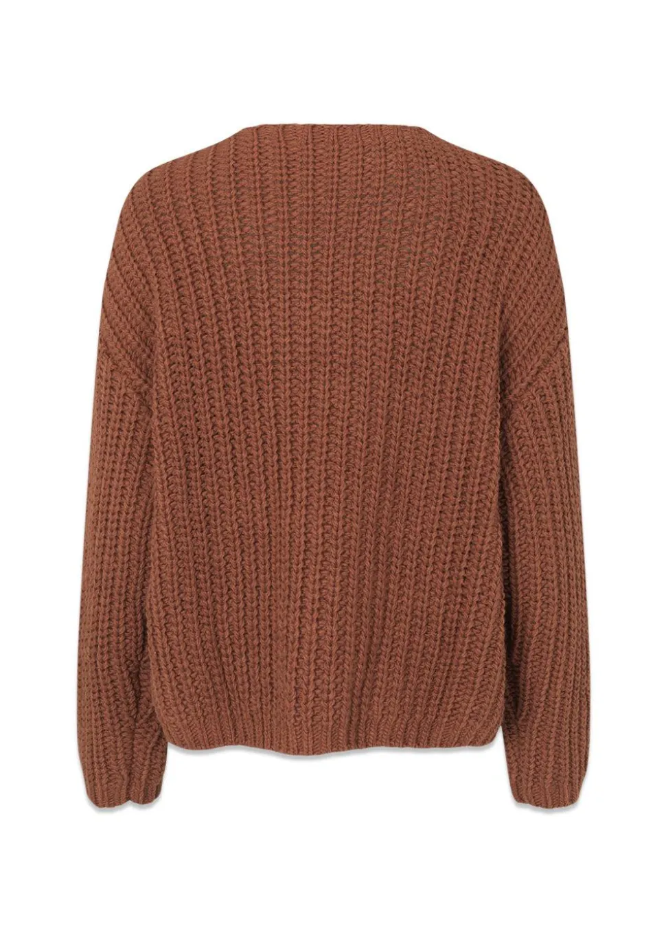 Felipemd v-neck er en chunky striktrøje i farven Maple. Strikken har en afslappet pasform, v-udskæring og lange ærmer med ribkant forneden.