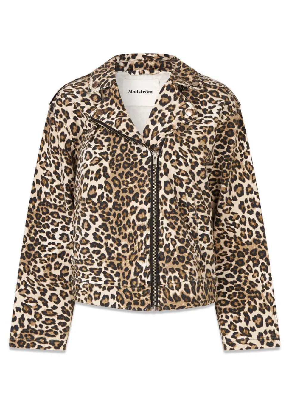 - Denimjakke i et cool snit med skrå lynlås