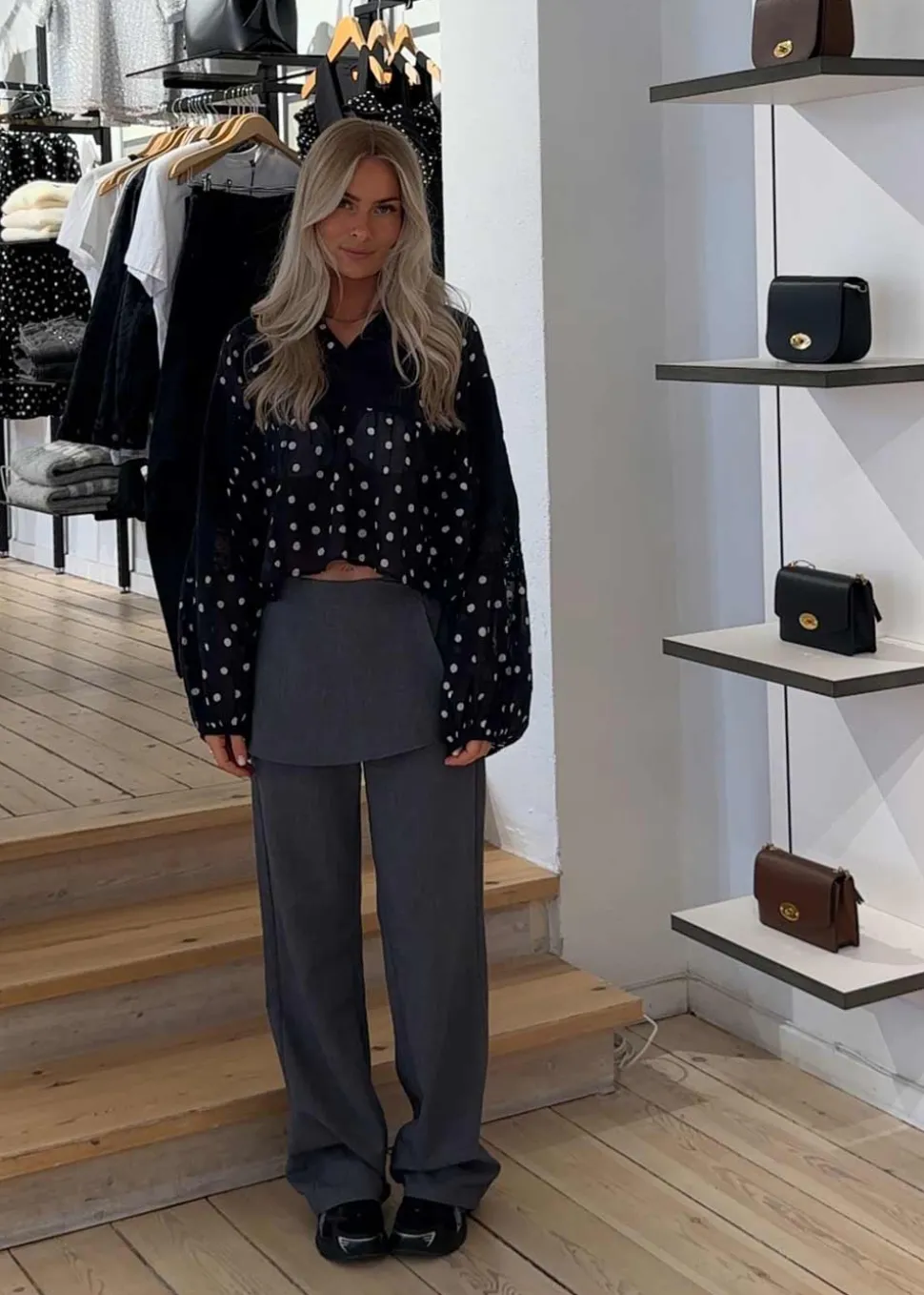- Den første model er 167 cm og bruger str. XS
