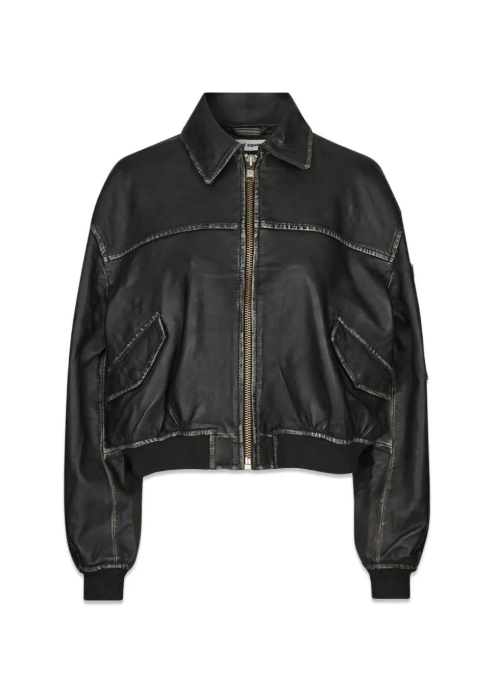 OSRocker Leather Bomber i farven Vintage Black er er virkelig cool læder bomber jakke i vintagelook. Læderjakken er med lynlås, 2 lommer foran med trykknapper og en lille lynlåslomme i det ene ærme. Jakken kommer med ribkant i bund og ved ærmer for en perfekt pasform og er fuldt foret.