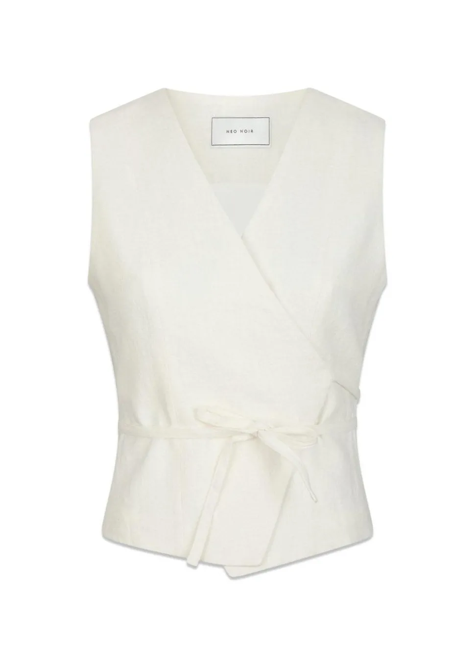 - Vest med wrap-over, som lukkes med et smalt bindebånd