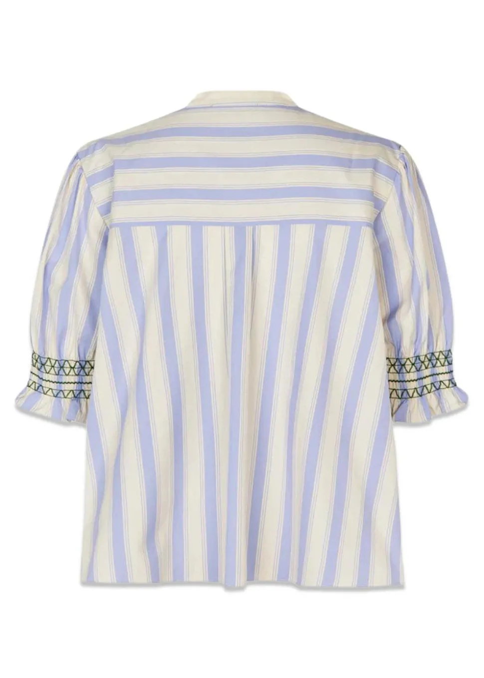 - Bluse med lyseblå og hvide striber