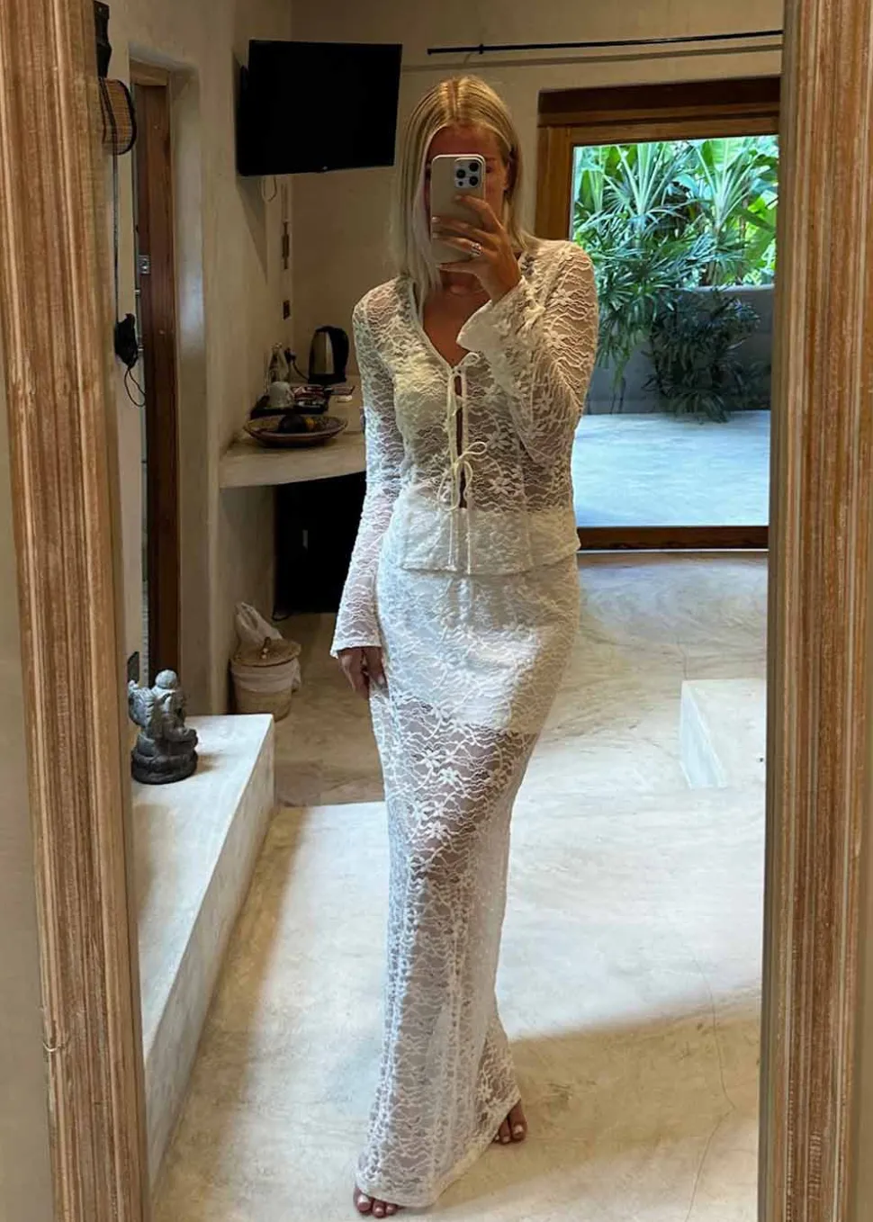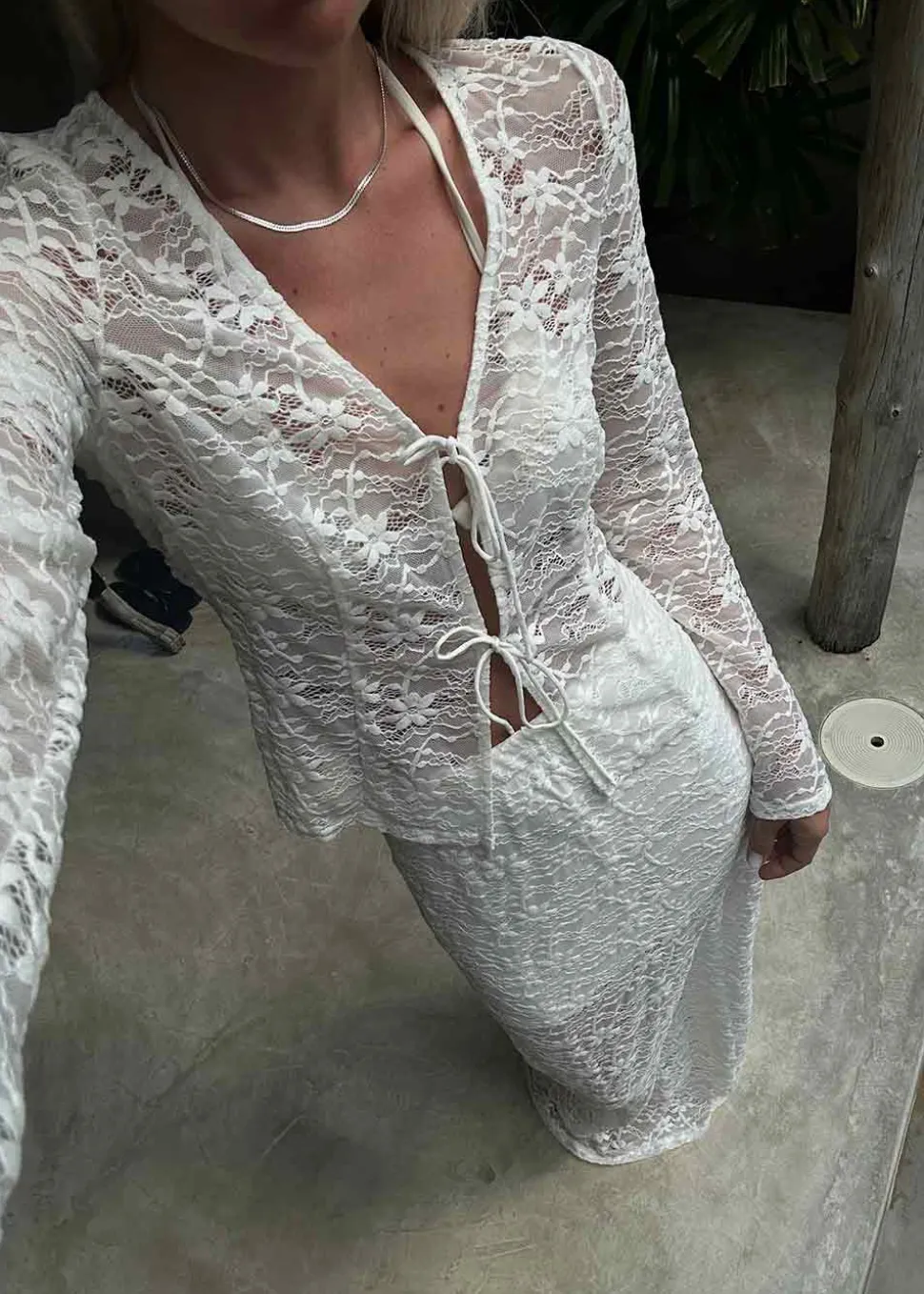 - Lang nederdel i gennemsigtig blondekvalitet