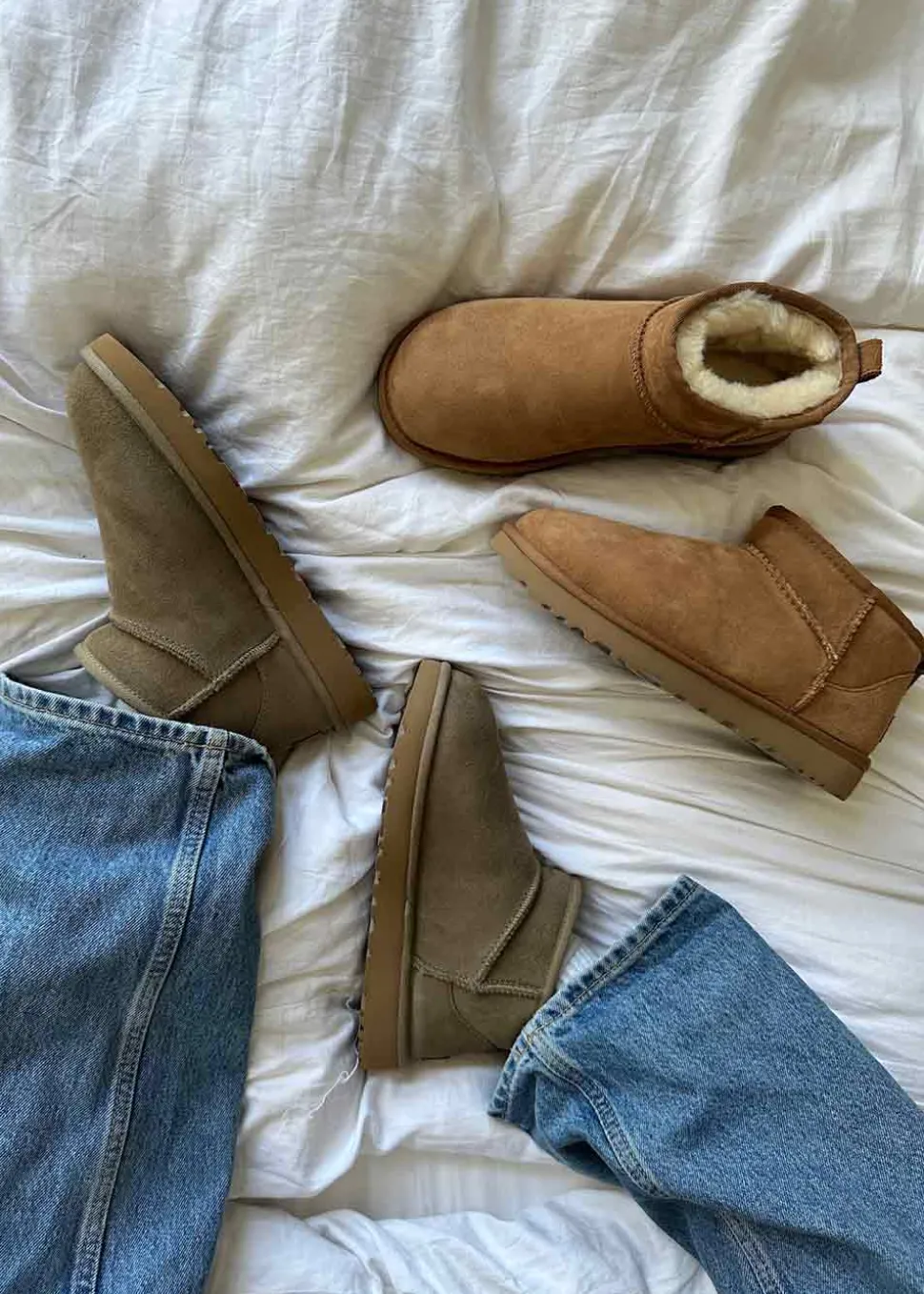 W Classic Ultra Mini er en lavere model af de klassiske UGG. Støvlen er forbehandlet for bedre holdbarhed. Classic ultra mini har præcis de samme detaljer som originalen – fåreskind, ultrablødt UGGplush™ for og en fleksibel letvægtssål.