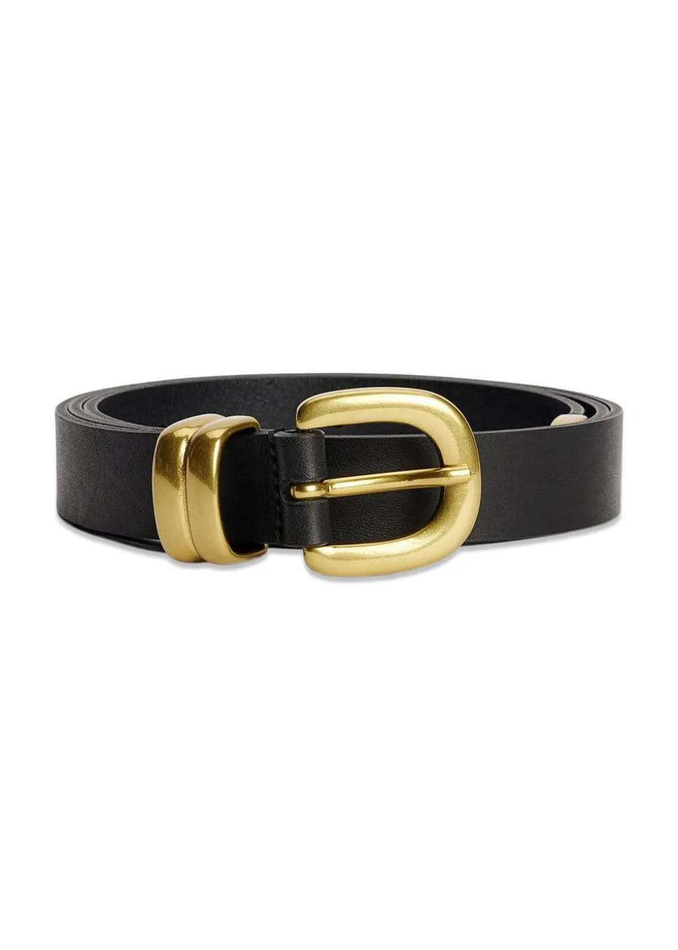 Dette sorte læderbælte fra By Malene Birger er en alsidig accessory, der kan bruges i taljen, hoften eller over overtøj. Det elegante design og den justerbare længde gør det nemt at tilpasse dit look.